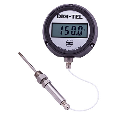 Model: ND4 Digital Industrial Remote Thermometers 4.5″ dial High visibility 1″ tall digital display Sold with a NIST traceable calibration certificate Click here to view dimensional drawings Made in USA Click here for lead times. Digi-Tel Thermometers Brochure Download Digi-Tel Calibration Utility