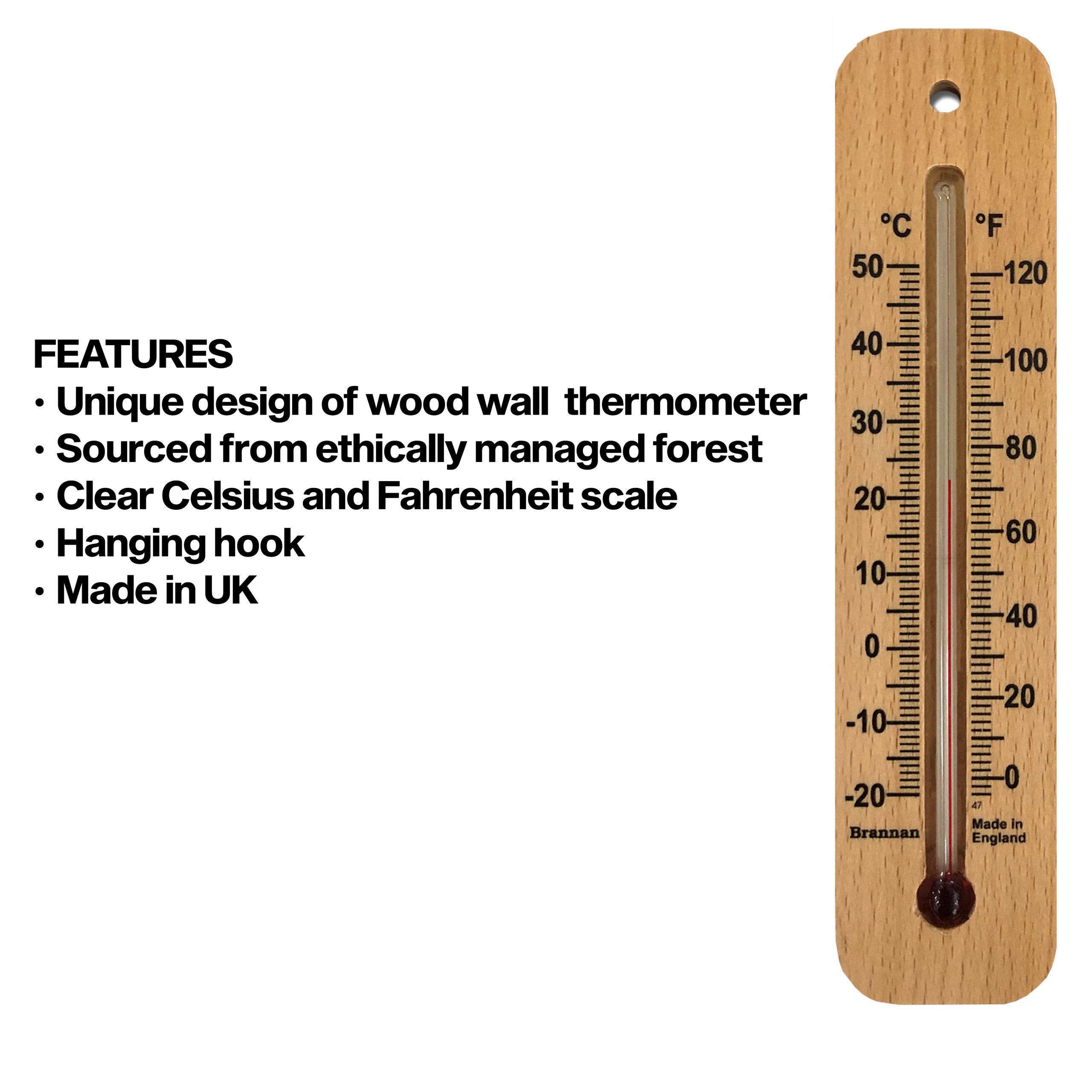 - Sustainable wood wall thermometers sourced from forests managed to strict environmental, social and economic standards