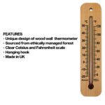 Ethically sourced, wood wall thermometer with clear printed temperature scale. This environmentally friendly thermometer is the perfect for domestic or industrial use and is suitable for use indoor or outdoor. (Place in sheltered position if siting outdoors.)