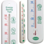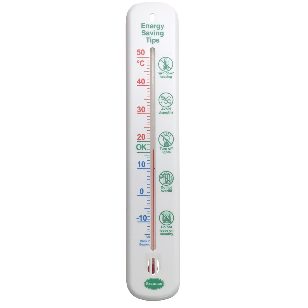 Unique 215mm wall thermometer printed with useful energy saving tips.