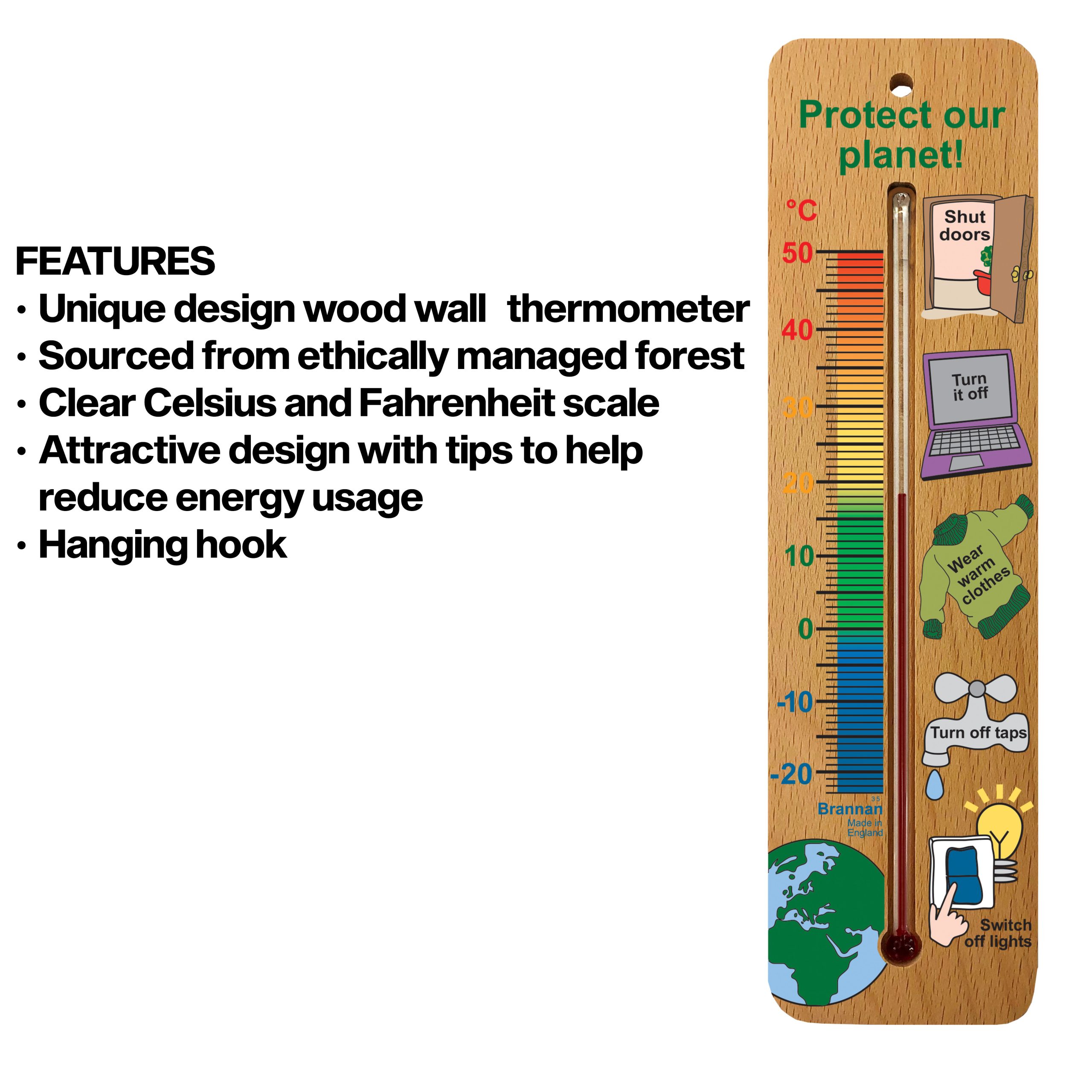 • Sustainable wood wall thermometers sourced from forests managed to strict environmental, social and economic standards