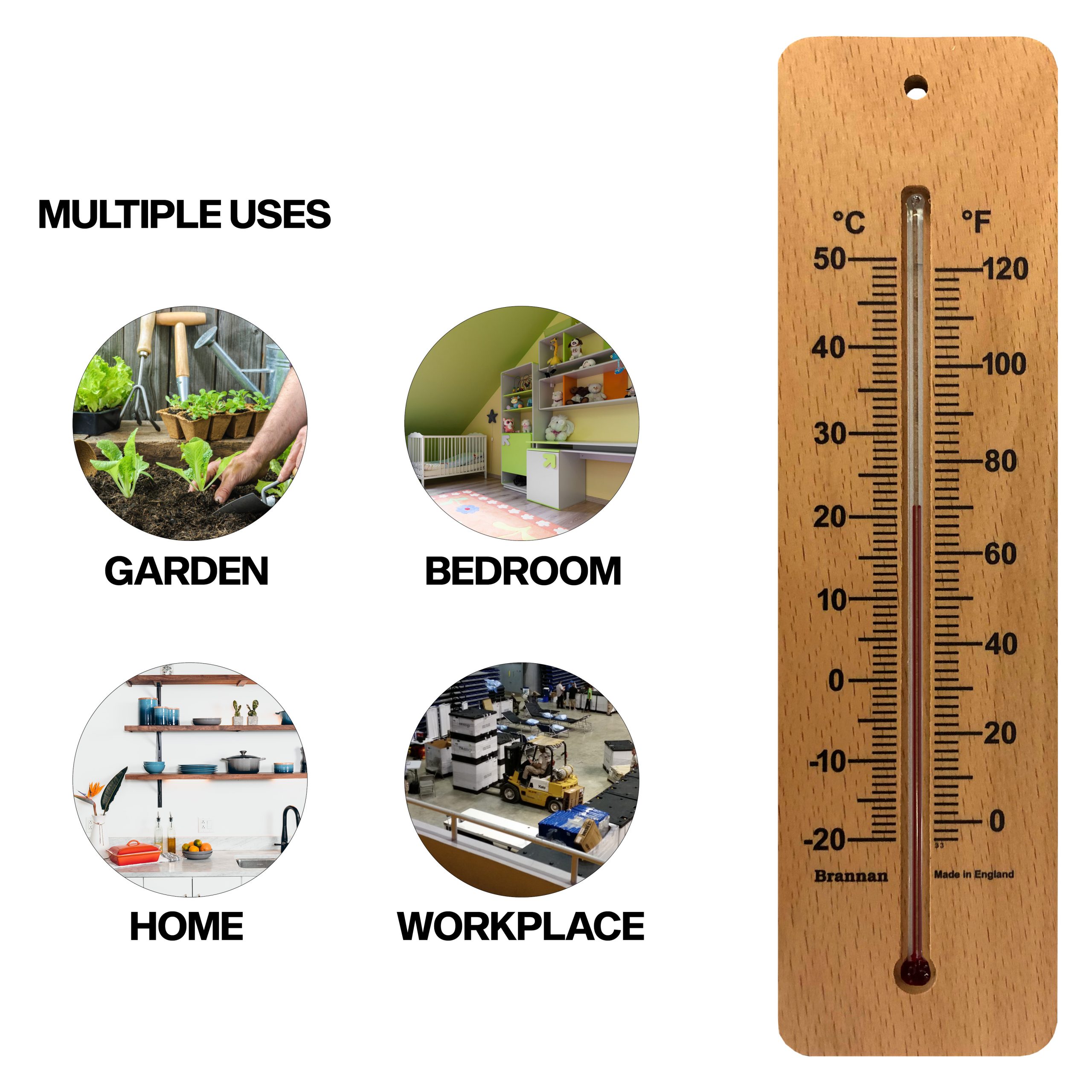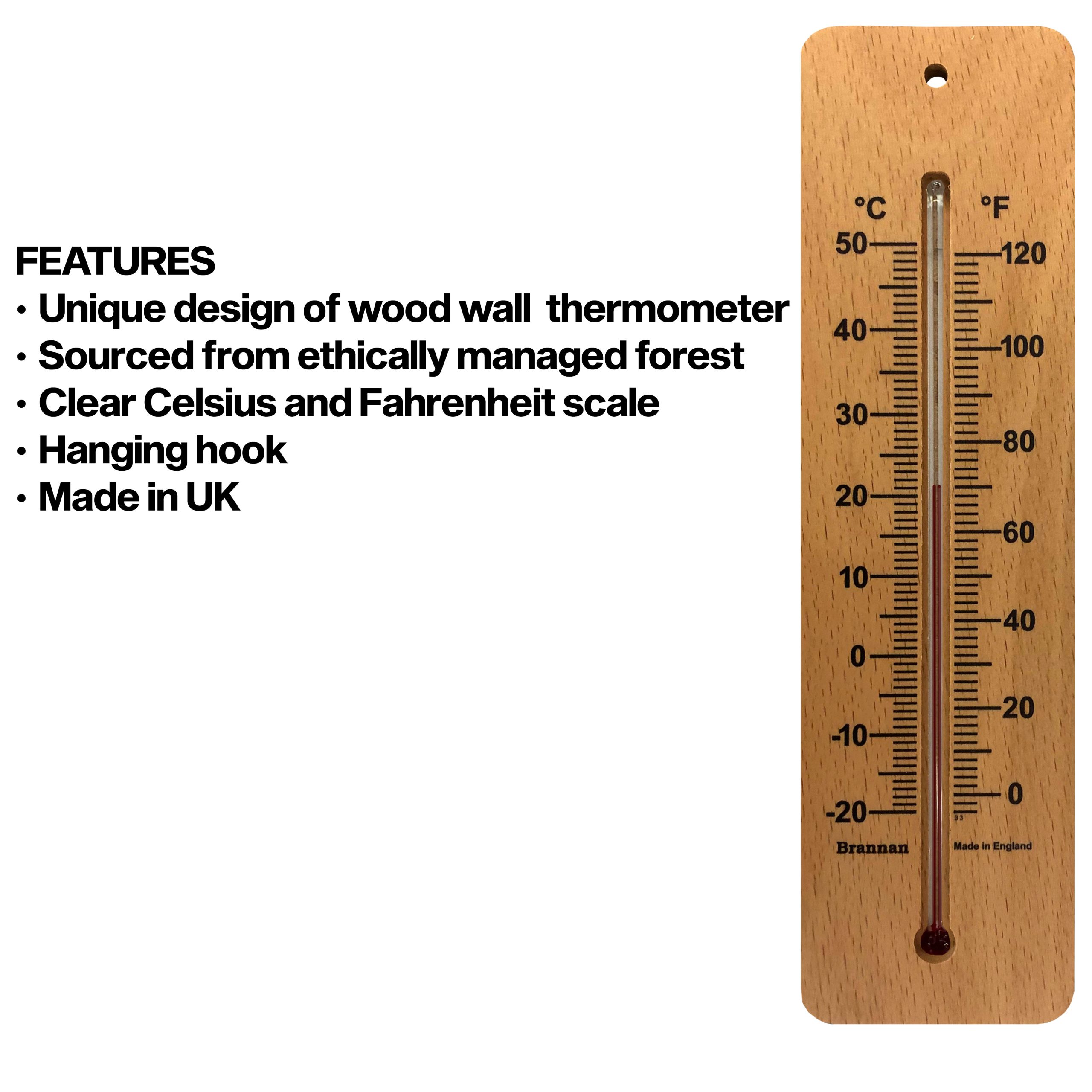 • Sustainable wood wall thermometers sourced from forests managed to strict environmental, social and economic standards