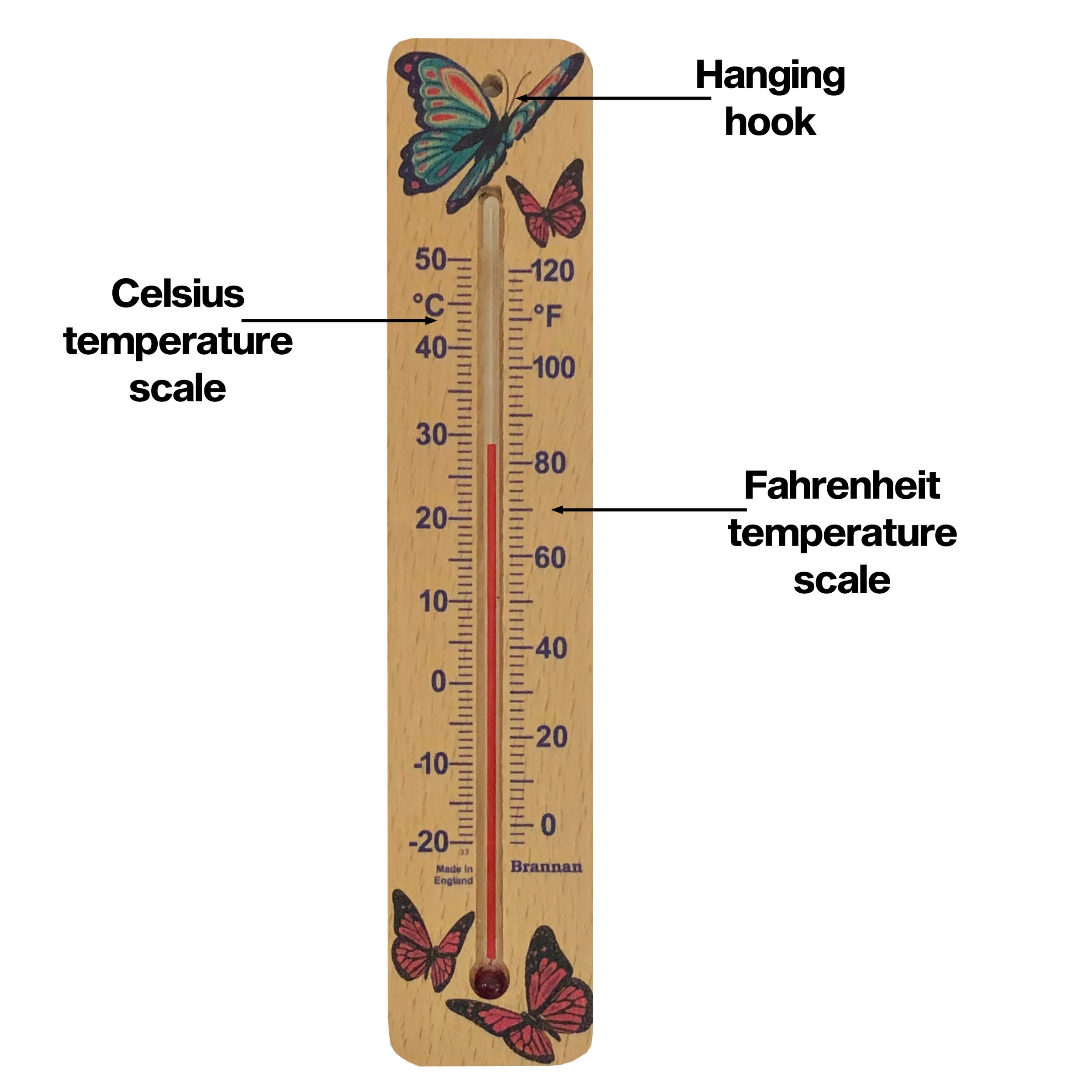 Ethically sourced, wood wall thermometer with clear printed temperature scale and attractive butterfly design. This environmentally friendly thermometer is the perfect for the home or garden use and is suitable for use indoor or outdoor. (Place in sheltered position if siting outdoors.)