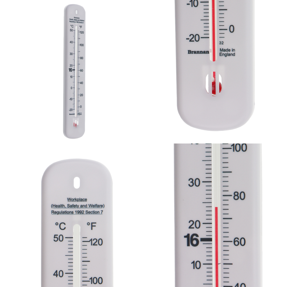 Large plastic wall thermometer, moulded in white plastic with recommended temperature for workplace in accordance with the Workplace (Health, Safety & Welfare) Regulations 1992, Section 7. Assists with maintaining the correct temperature in the office, factory or other places of work.