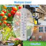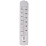 Large plastic wall thermometer, moulded in white plastic with clear, black printed temperature scale. Suitable for indoor and outdoor use – ideal for use in the home or garden.