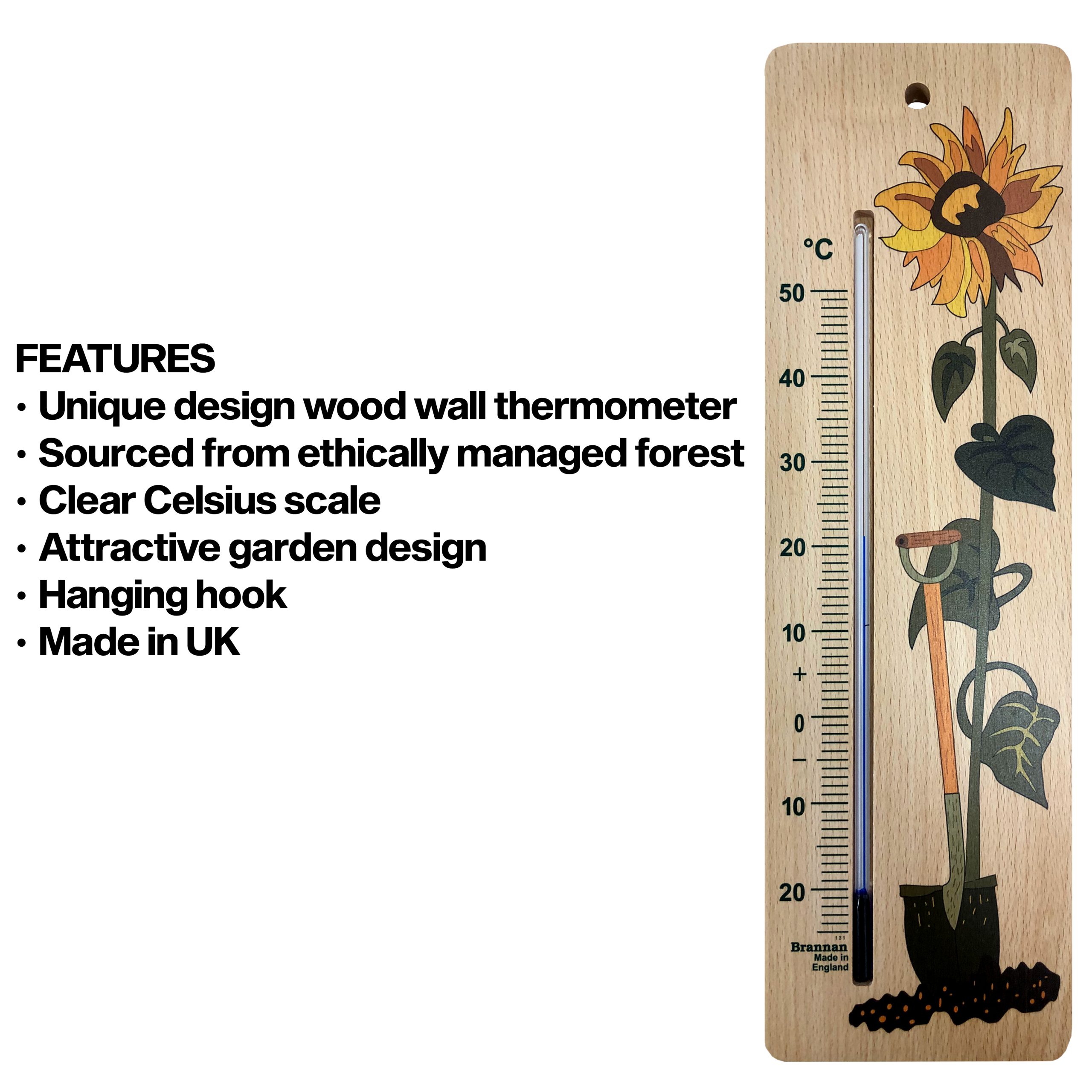 • Sustainable wood wall thermometers sourced from forests managed to strict environmental, social and economic standards