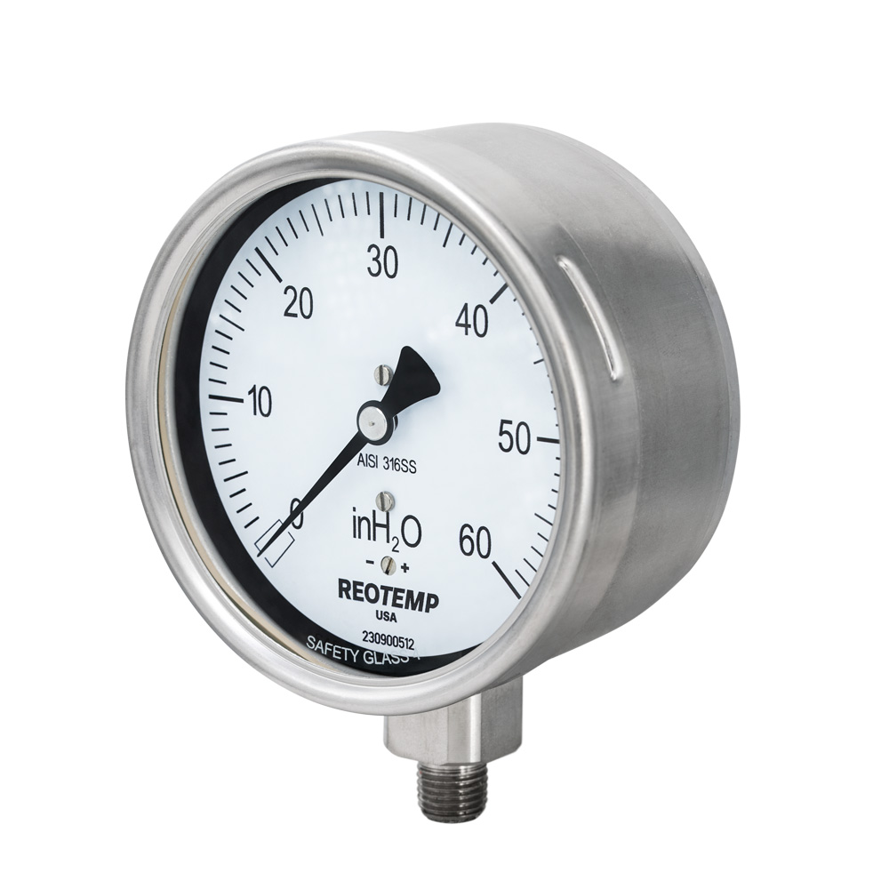 REOTEMP’s Series PCS low pressure gauges offer accurate and reliable measurements of gaseous media. Offered with stainless steel internals, the Series PCS is designed to withstand corrosive media and ensure a long-lasting instrument.