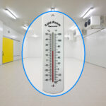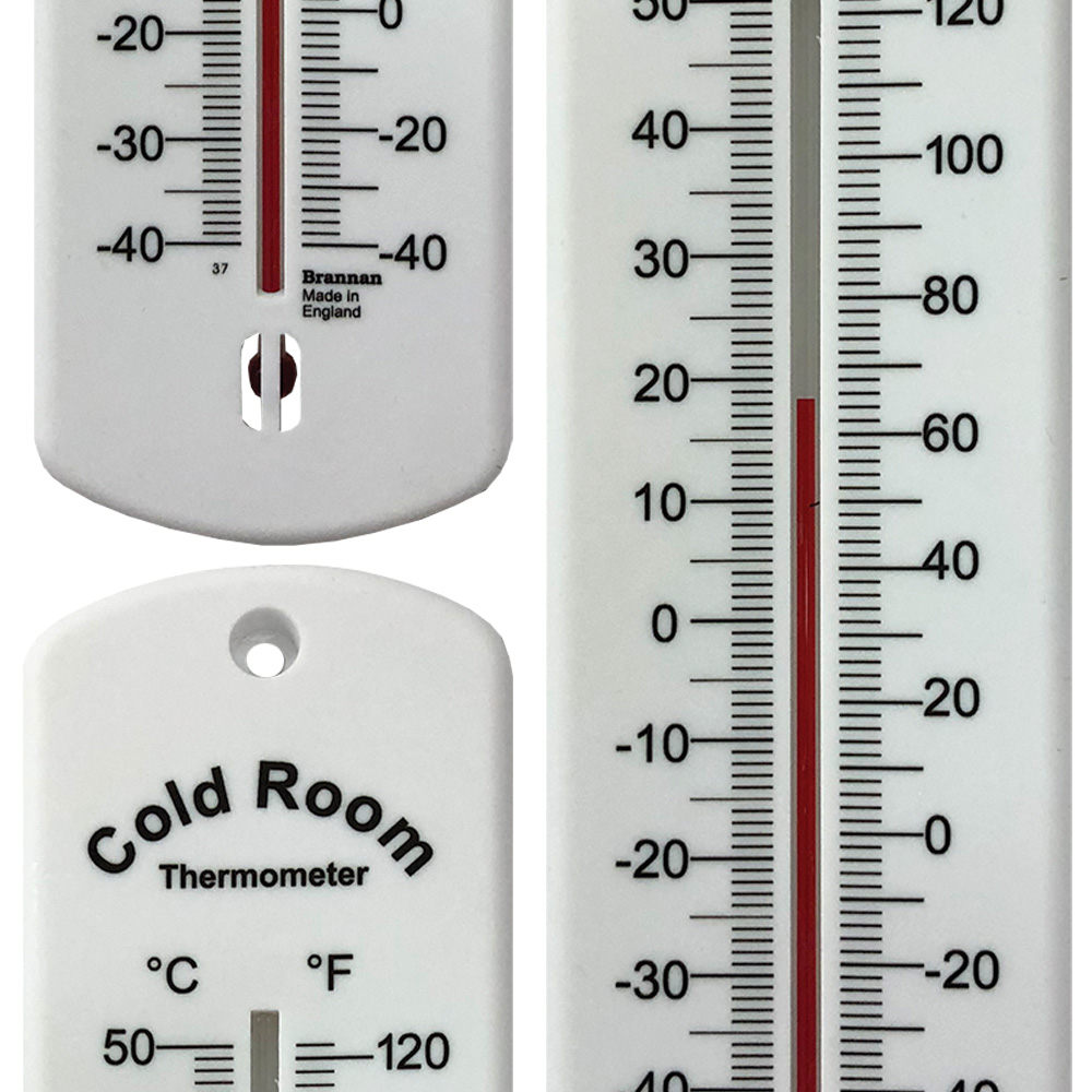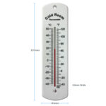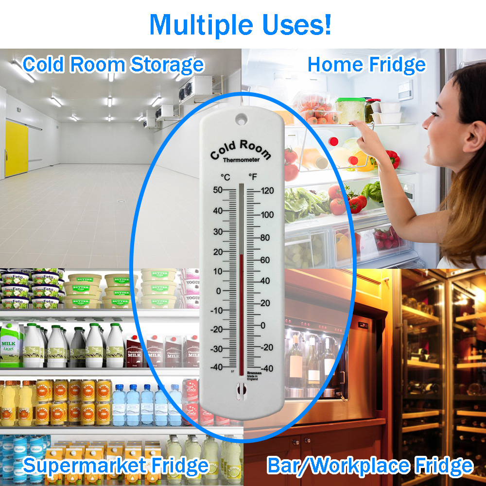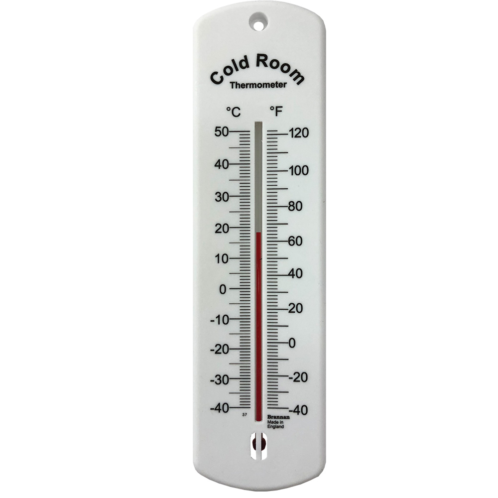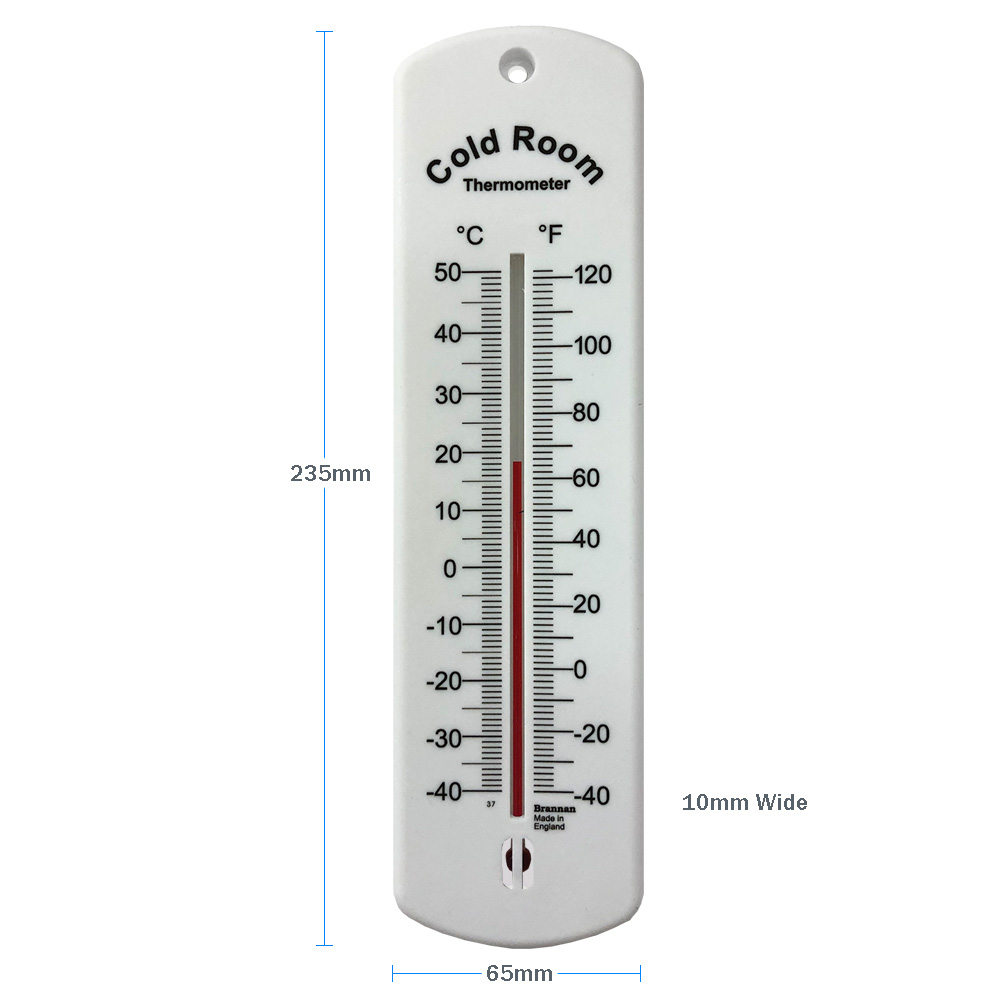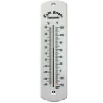 240mm wall thermometer for use in walk-in fridge/freezer or cold storage rooms. Moulded in white plastic with clear black print.