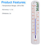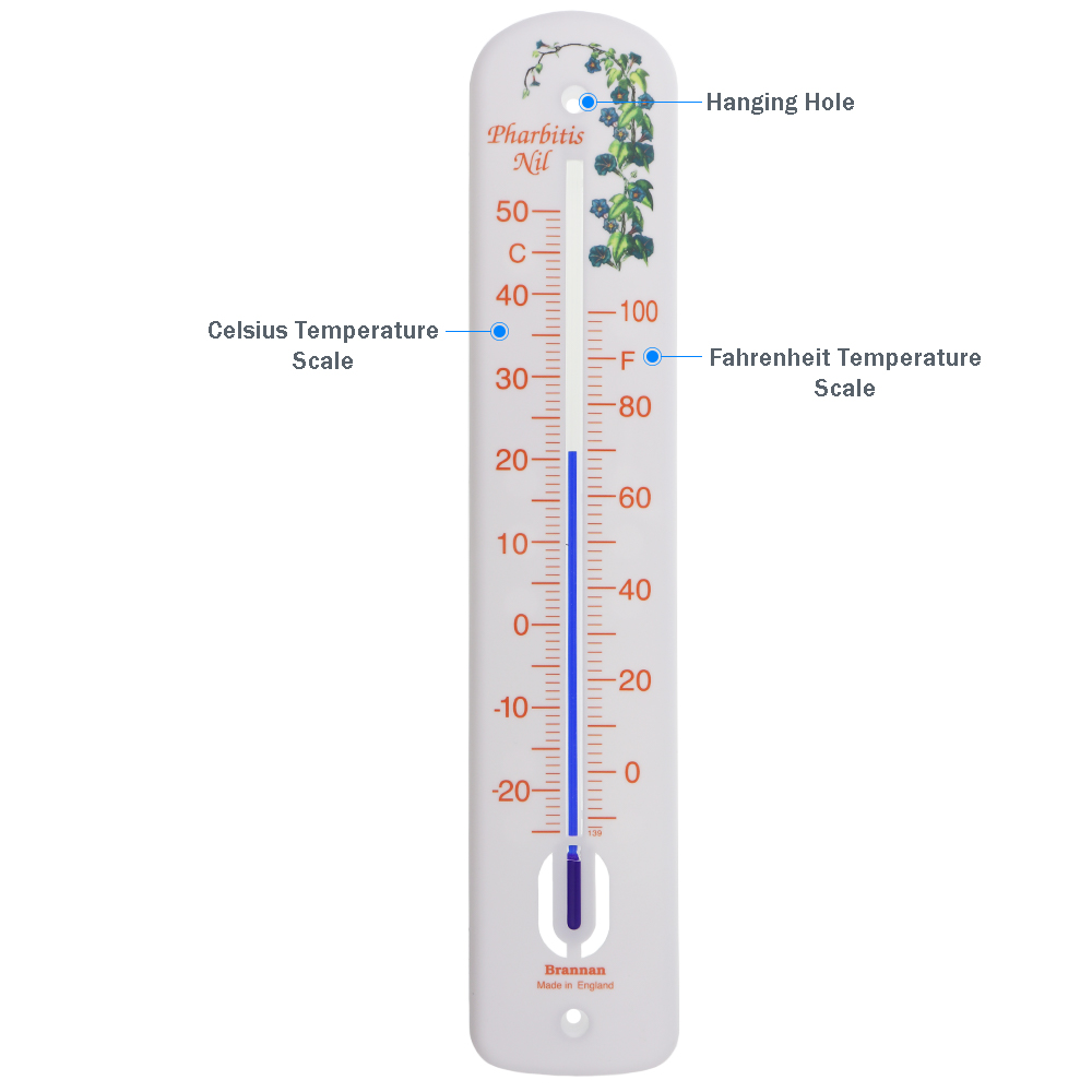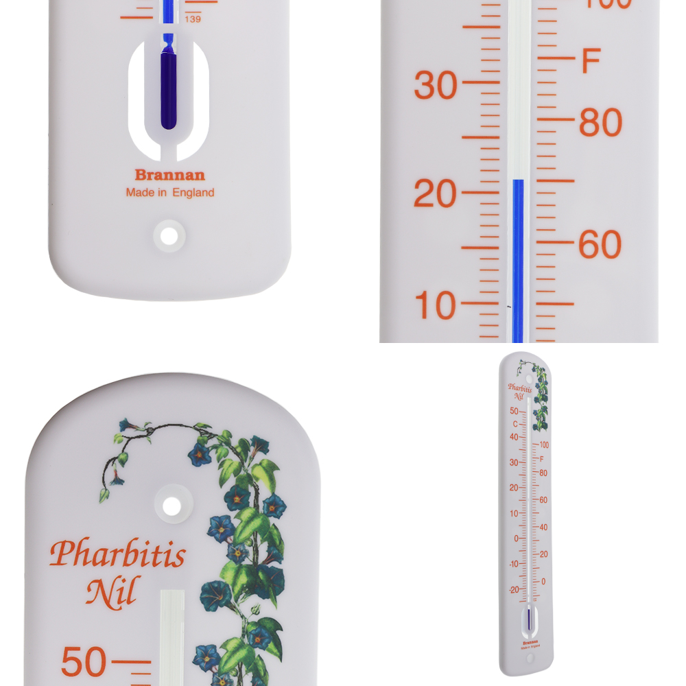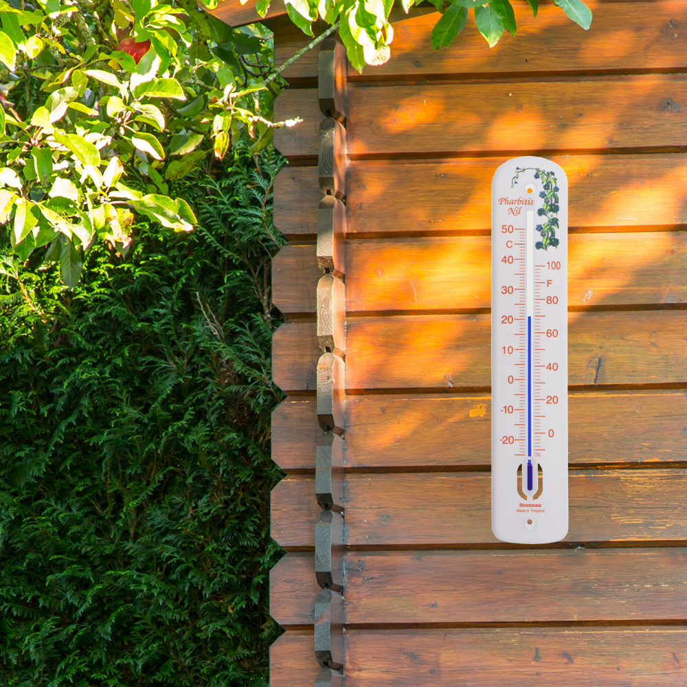 380mm large plastic wall thermometer with attractive flower design and clear printed temperature scale on white moulding. Suitable for indoor and outdoor use, this thermometer is ideal for use in the home or the garden.