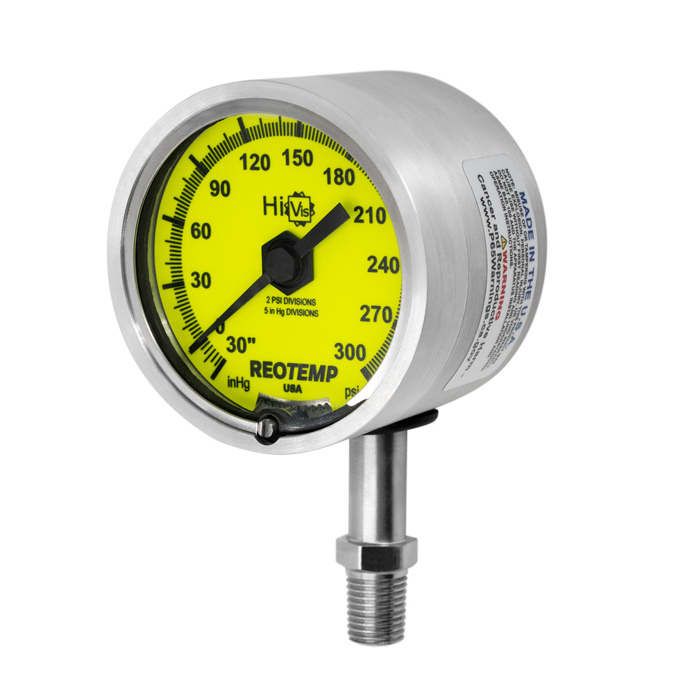 Reotemp’s PGL series pressure gauge is a gearless, direct drive design ideal for extreme applications where vibration and pulsation are prevalent. This gauge features a low volume sensing element, ideal for diaphragm seals.