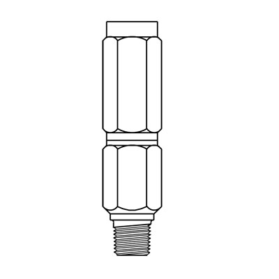 Piston Center Joint, 1/4 inch NPT male inlet, 1/4 inch NPT female outlet, Length 3.46 inches, Hex .750 inch