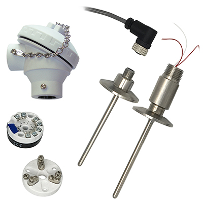 Sanitary RTD probe assembly, with optional connection head and programmable transmitter. Sanitary configurations feature Tri-Clover® fittings and surface finishes that comply with 3A Standard Number 74-07 for food, dairy, beverage, pharmaceutical and chemical processing applications. Made in USA. Tel-Tru has developed the new Low Profile resistance temperature detector assembly specifically to meet the needs of customers who require a sanitary RTD to measure a process temperature, but have very little space for a connection head. Preferred by OEMs building brewing and other food processing systems, this device allows manufacturers to install the RTD precisely where they need it in the system without the typical protruding connection head. To order the low profile Sanitary RTD, be sure to choose one of the M12 connection options. |
