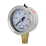 REOTEMP’s Series PG15/20 gauges are an economical choice where ambient corrosion and vibration are of concern. The stainless steel case and ring offer excellent corrosion resistance, and is fillable for vibration or pulsation applications. It is suitable for all fluids compatible with copper alloys.