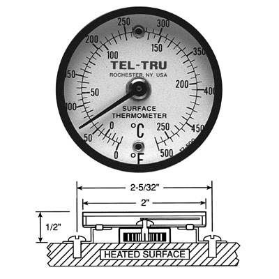 Tab Thermometer, surface mount, 2″ dial, dual range surface thermometer